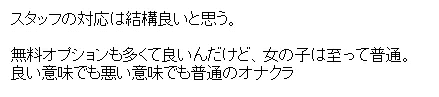 男性スタッフ、風俗嬢の接客がもう少しだけ丁寧だったら、完璧かも。