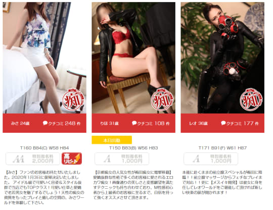 大阪・梅田のデリヘル「梅田痴女性感フェチ倶楽部」の女の子レベルとおすすめ嬢