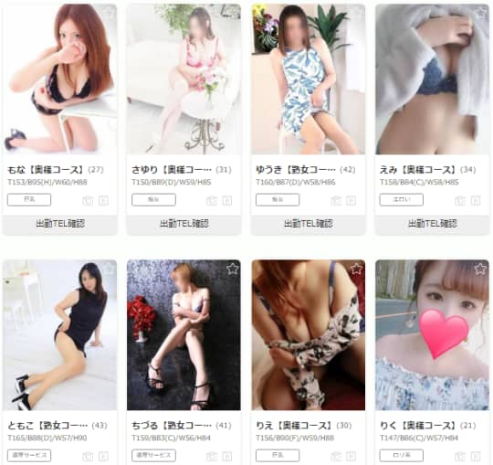 その中にも「お姉系」「ギャル系」「エロカワ系」など、個性が光っています!デリヘル頼むなら断然若い子好みって人には、超おすすめと言えますね。