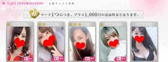 ※ランク指名料のため王冠マーク1個につき別途1,000円追加