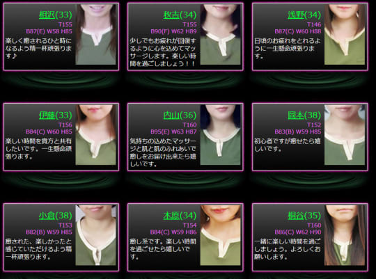 口コミにあるように、公式HPの写真もプロフィールもかなり信頼度は高く、写真もナチュラルなマッサージしているところを想像できる写真でこの上ないのですが、目の綺麗さで選ぶ私にとっては、可能であれば片方の目だけでも見れる工夫があると嬉しいです。