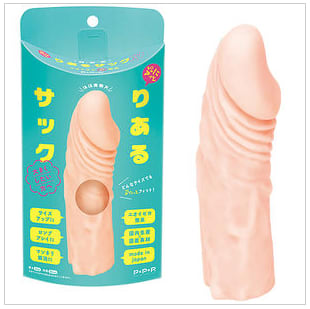 アダルトマーケット内では、「男性補助」というカテゴリーに入ってるグッズです。股間のサイズに自信がない男性が、モノに被せて使うのが本来の使い方みたいですね。