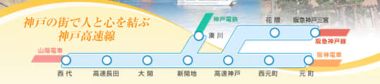 新神戸から地下鉄に乗り三宮へ行き、三宮にて阪急または阪神の乗り場まで徒歩で行き、阪急、阪神、山陽の電車に乗車して新開地へ