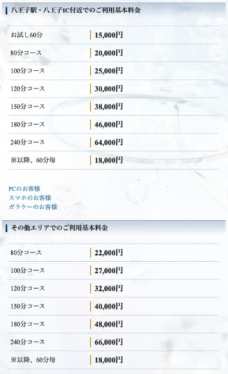 魅惑の官能アロマエステEureka!~エウレカ!~の料金システム