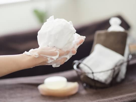 細かく泡だてられた泡は形を崩すことなく、優しくチンポを包んでいく。