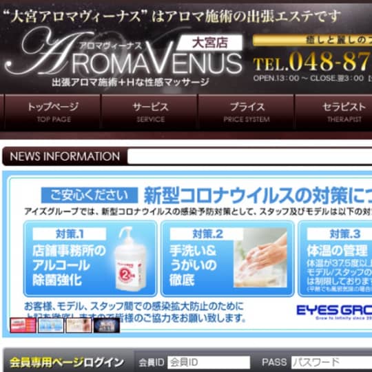 大宮のアロマヴィーナスは全国各地に7店舗以上のデリヘルや風俗エステを運営している「アイズグループ」のお店の内の1つです。