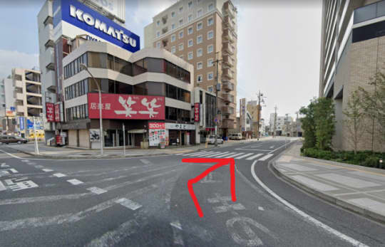 駅を右に出て居酒屋「笑笑」から右へ曲がります。