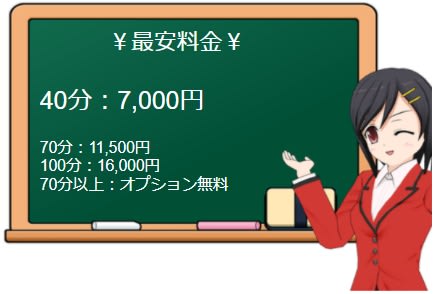 せっかく可愛い子と遊ぶならば...ということで、オプションが無料になる70分以上のコースが圧倒的人気ですが、初めての方は激安で利用できる40分7,000円のコースでの検討もいいかもしれませんよ!
