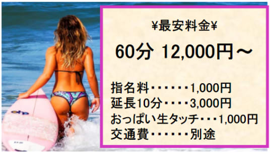 70分10,000円。他のお店よりも10分長く同じ値段で楽しめる。最高ですね(笑)