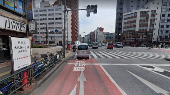 東新宿駅からこちらの横断歩道を渡るともうすぐだ。