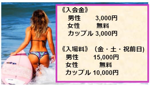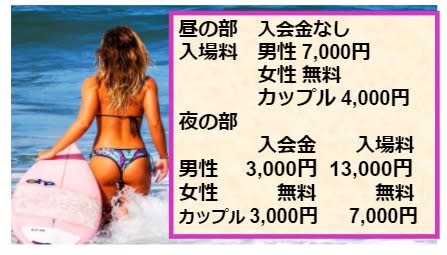 さらに安い昼の部のシステムは、男性7,000円・女性0円・カップル3,000円となる。