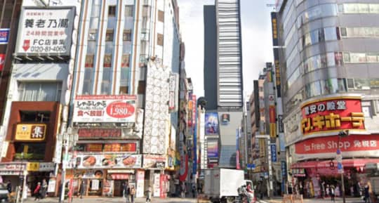 アルタ前の横にある百果園を右手に見ながら直進。歌舞伎町方面へ。