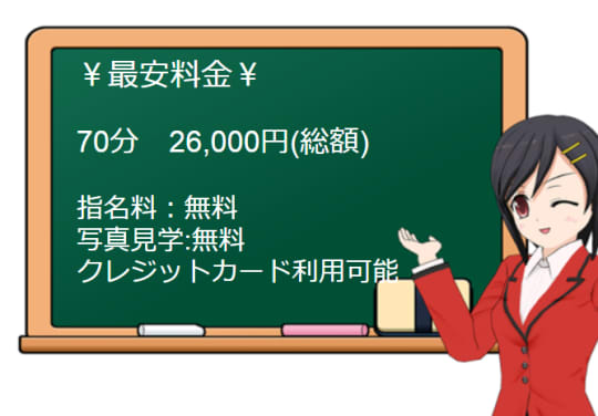 基本コースは70分〜ですが、お試しで50分18,000円のコースで遊ぶことが出来ます。ですが、このコースは一度遊んだ女の子は使えませんし、ポイントや割り引きなどは対象外になるのできお付けて下さい。
