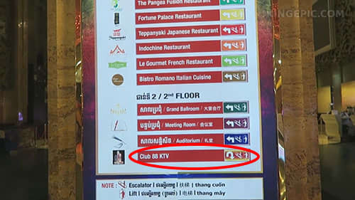 もう1ケ所。カラオケ置屋【88】を探しに上のフロアに。Kいわく、体裁はカラオケだが実態は置屋。入ってすぐのスペースで、ショーアップさせて選んで、歌うことなく即、連れ出せるのだと。ただしカジノ客相手の商売なので、安くても200ドルは用意しないといけないらしい。