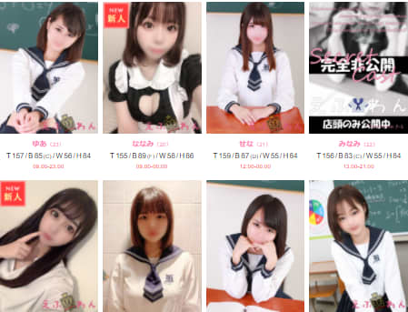 えふわんには制服が似合う美少女ばかりが68名ほど在籍しています。