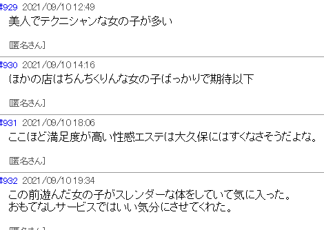 レベルの高い女性が多いのに料金が安めです。また受付の対応も良かったです。