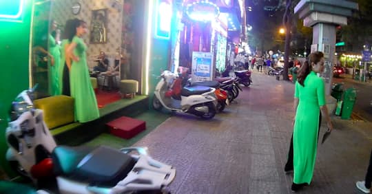 和食店、カラオケ、ガールズバー、安いアパートメントなどがひしめき合うこのエリアを【ヘム】と呼んでいるサイトもありますが、それは誤解を招く表現。ヘムとはベトナムでは小道のことなので、ベトナム中どこにでもヘムはあります。