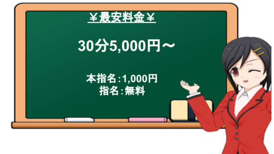最安料金は【9:00~12:00までの利用】で50分13,000円~、入会金は2,000円、写真指名料は無料、ワンランク上の女の子を指名する場合は+1,000円かかります。