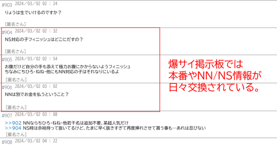 とはいえ、爆サイ掲示板を見るとNS・NNできたなんて口コミが…。