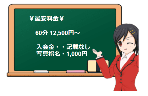 最安料金は通常コースの50分12,500円~で、写真指名料は1,000円です。