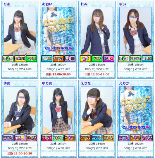 女性のレベルはキャンディボックス等には劣るかなという印象がありますが、きれいでテクニックがある女性の在籍も確認されています。