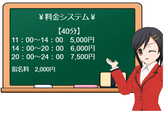 最安値が40分5,000円と嬢一人当たりの価格では今回紹介する店舗で最もお得になります。