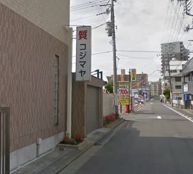 左手に質屋コジマヤが見えてくるので、コジマヤ反対側の駐車場手前で右折します。
