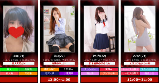 また女の子はランクが細かく設定されていて、同じコースでもランクによって値段が変わるので利用する時は公式ホームページをしっかりとチェックした方が無難。