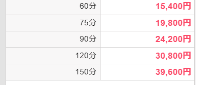 料金 | 60分15,000円〜 | 60分6,900円〜 |