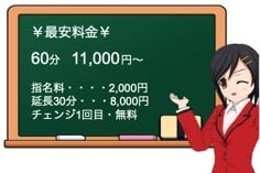 60分11,000円の最安は熟女コースで、奥様コースであれば60分13,000円〜利用できます。