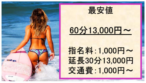 60分14,000円に、指名料1,000円、オプション1,000円、交通費1,000円をプラス。