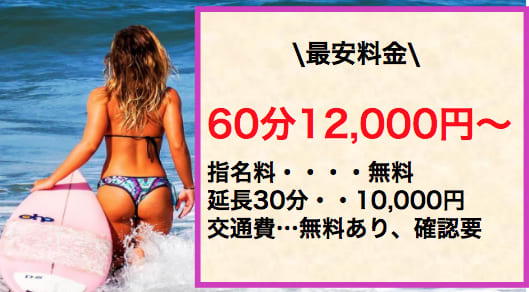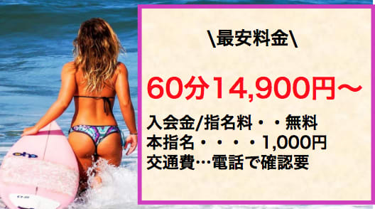 60分14,900円から遊べる。初回の指名料は無料だけど、本指名は1,000円かかるみたい。交通費については電話でお問い合わせって感じだった。