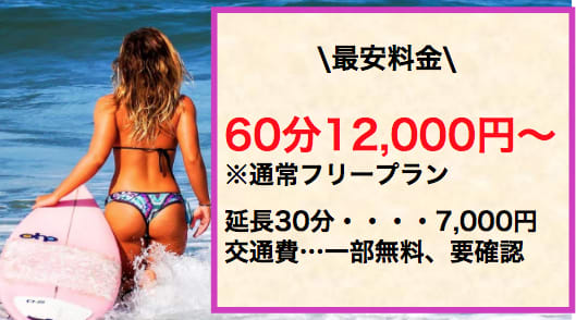 60分14,000円から遊べていい感じ。指名料は1,000円だから、15,000円から遊べると思うと安いね。交通費は無料エリアありだけど、詳しくは電話で要確認。