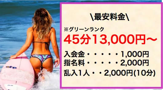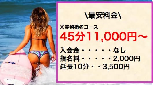ヘルスの値段としては標準的かな。若干安いようにも感じる。45分11,000円から遊べるから、財布が寂しいときでも安心。指名料2,000円かかるけど、見て触って指名ができるからぜひ利用してほしい!
