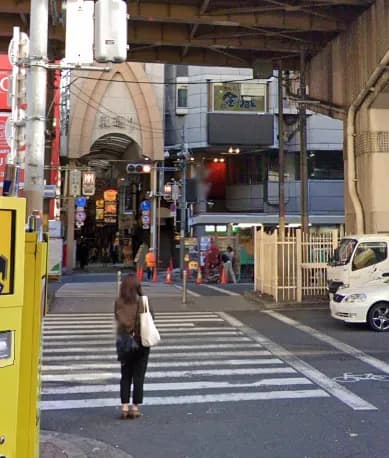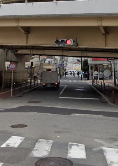 高架下の信号を渡ろう。渡ればお店まではもう少しだ!