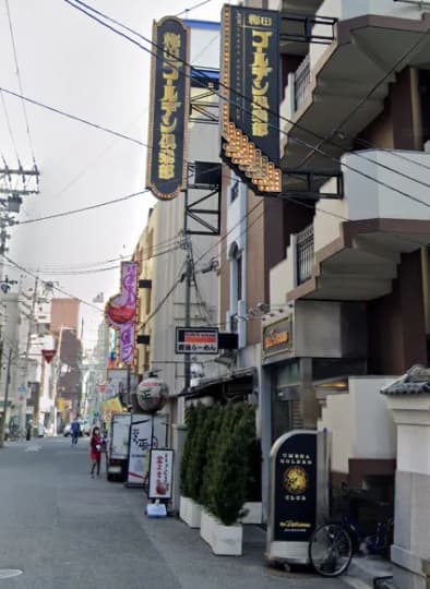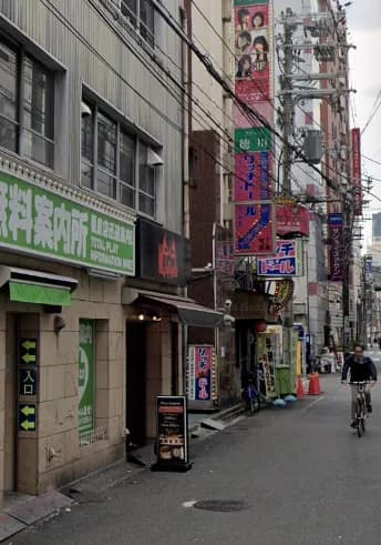 個室DVD鑑賞のお店や、キャバクラなどが密集したエリアと、ヘルス等の風俗店が集まるエリアは扇町通りを境に区別されている。