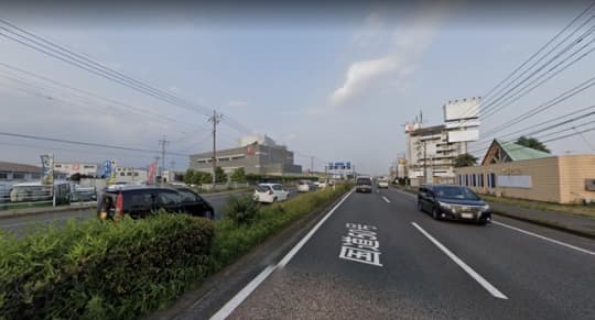 車道は逆になるけど、グレーの建物「両毛丸善」が目立つから知っておくといいかも(写真では真ん中あたり)。