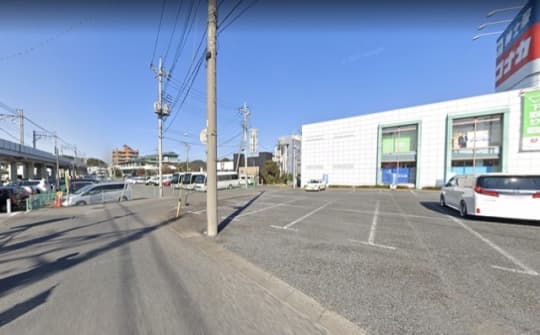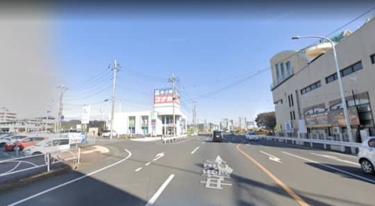 交番が見えたら、次は右に曲がろう。すると写真のように左手に「紳士服・コナカ」が見えてくる。