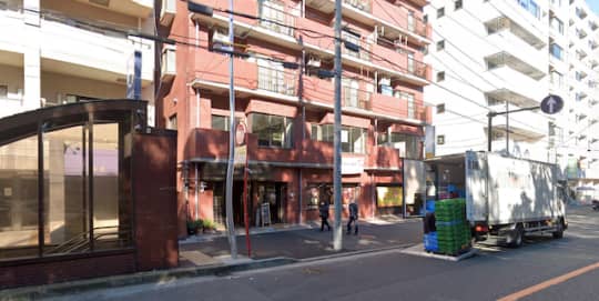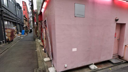 ⑤右側に見えているピンクの建物が横浜ハッピーマットパラダイスだ!