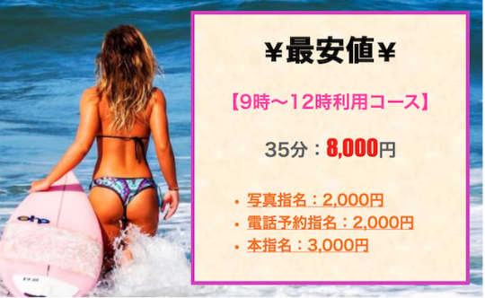 横浜ハッピーマットパラダイスの最安値は、9時〜12時利用の35分で8,000円だ。