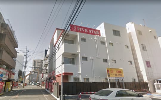 ⑤右側に店舗が入っているFIVE STARの赤い看板が見えてくる。