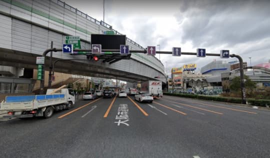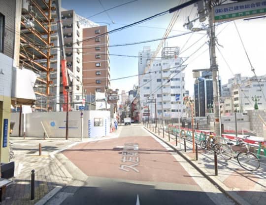 なんば駅1番出口を出て、大阪市道南北線を北上します。