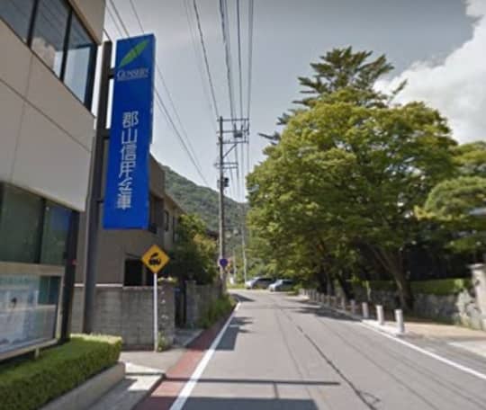 磐梯熱海駅を出たら、左手の温泉街方面を抜けて「郡山信用金庫熱海支店」がある通りを直進する。