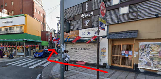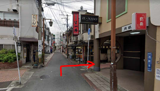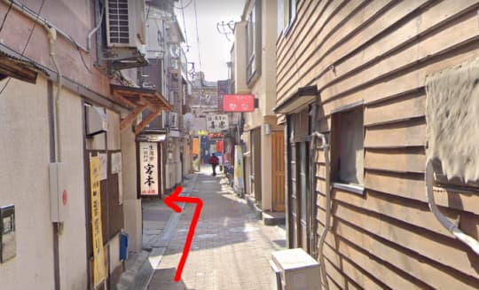 次は「一品料理 宮本」が左に見えてくるので、左へ曲がります。