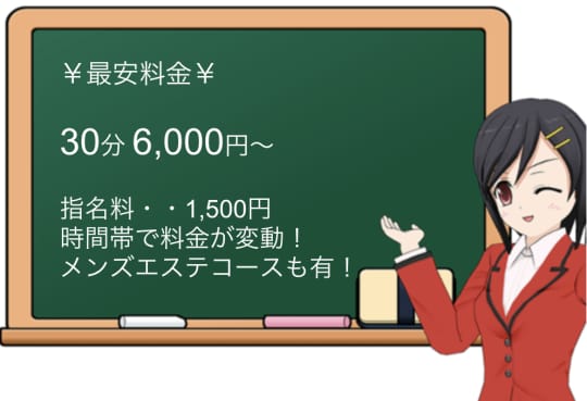 料金 | 40分7,000円~ | 30分7,000円~ | 60分6,000円~ | 30分5,500円~ | 40分8,000円~ |