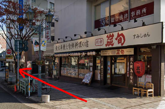 そして、ちょっとわかりにくいかもしれませんが、左側の角に立食形式の飲食店タイプの『巡(ジュン)』とう店があるところを左へ曲がります。