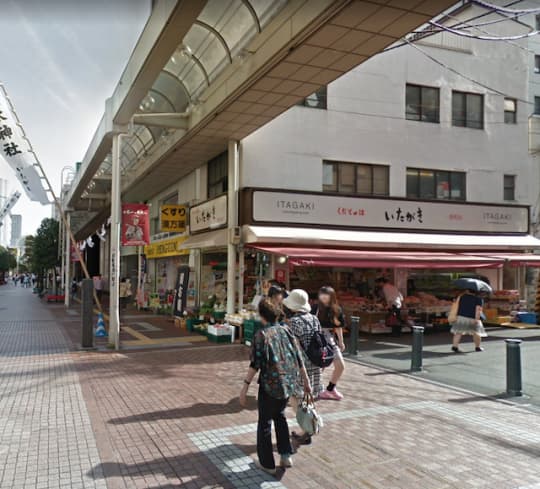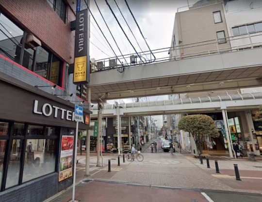 ①地上に出たら、こんな景色の交差点になるので横断歩道を渡って南に進む。