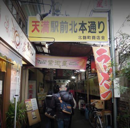表に出ると、目の前に「天満駅前北本通り」のアーケードが見えるので、通りを直進。