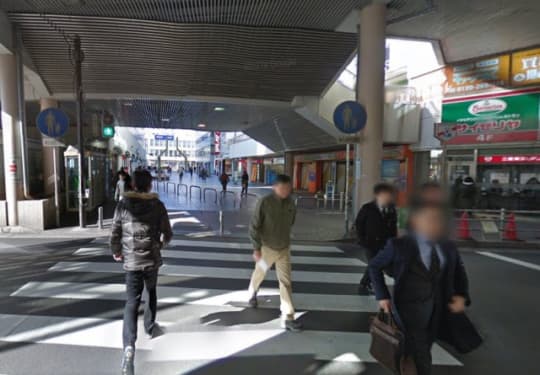 駅を背にして、横断歩道を渡ります。