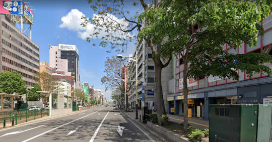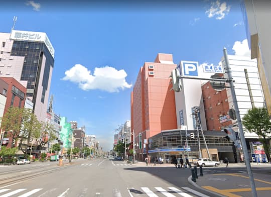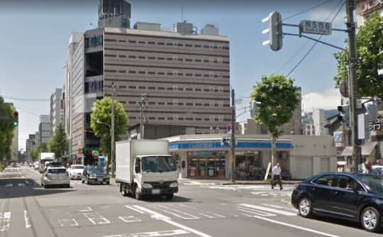 市電を下車したあと、月寒通りを東に進み、1つ目の角を右折して、すすきの5条メイプル通りに入る。